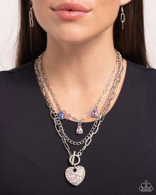 Half of My Heart - White - Rhinestone Embossed Tiered Paparazzi Short Necklace