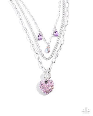 Colorful Cadet - Purple - and Pink Painted Rings Tiered Paparazzi Short Necklace