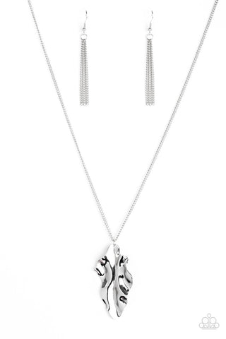 Blooming Oasis - White - Oversized Stone Teardrop Silver Leaf Paparazzi Cuff Bracelet