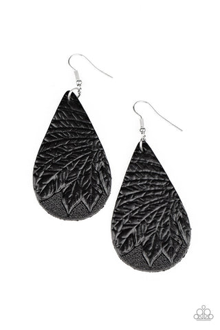 Everyone Remain PALM! - Black - Leaf Stamped Leather Paparazzi Fishhook Earrings