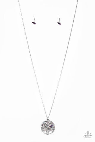 I Be-LEAF - Purple - Crystal Bead Leaf Charm and Tassel Paparazzi Long Necklace