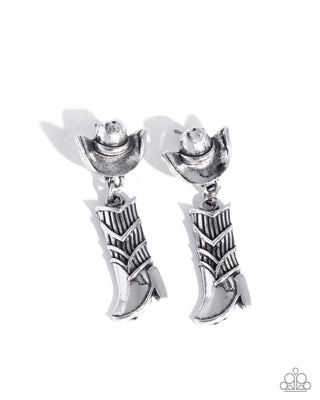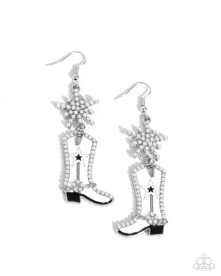 Compelling Cowboy - White - Pearl and Silver Star Boot Paparazzi Fishhook Earrings