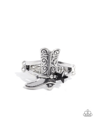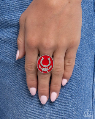 Western Wraparound - Red - Stone Silver Boot & Horseshoe Western Paparazzi Ring