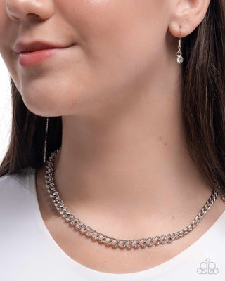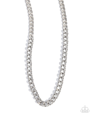 Modular Maven - White - Rhinestone Encrusted Curb Chain Paparazzi Short Necklace