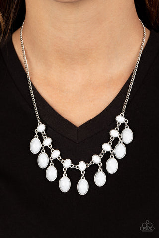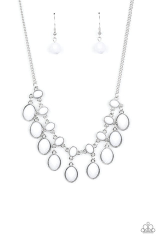 Blooming Oasis - White - Oversized Stone Teardrop Silver Leaf Paparazzi Cuff Bracelet
