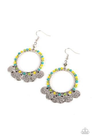 Joshua Tree Tourist - Multi - Red Orange Yellow Seed Bead Silver Paparazzi Hoop Earrings