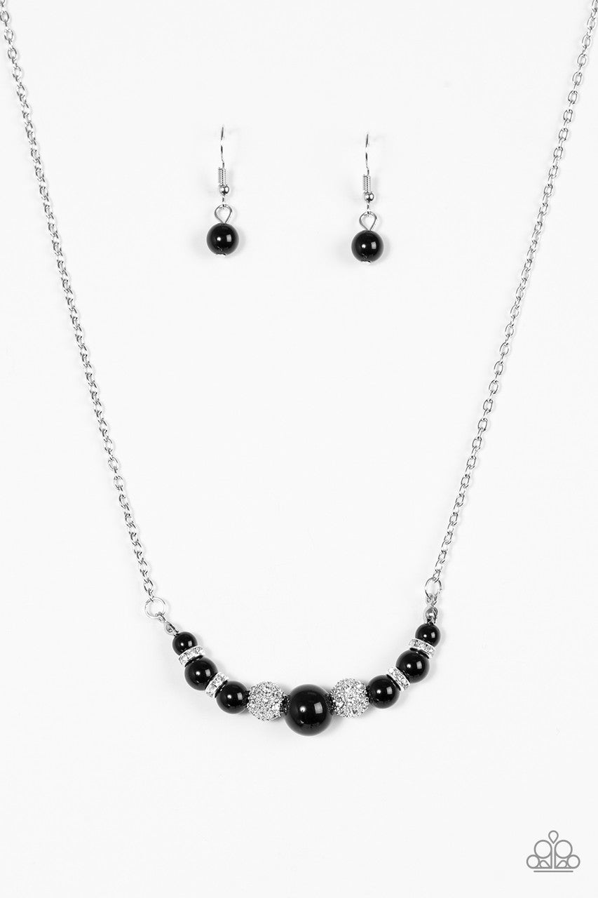 Encrusted in glassy white rhinestones, sparkling silver beads and polished black beads are threaded along a wire, creating a refined pendant below the collar. Features an adjustable clasp closure.