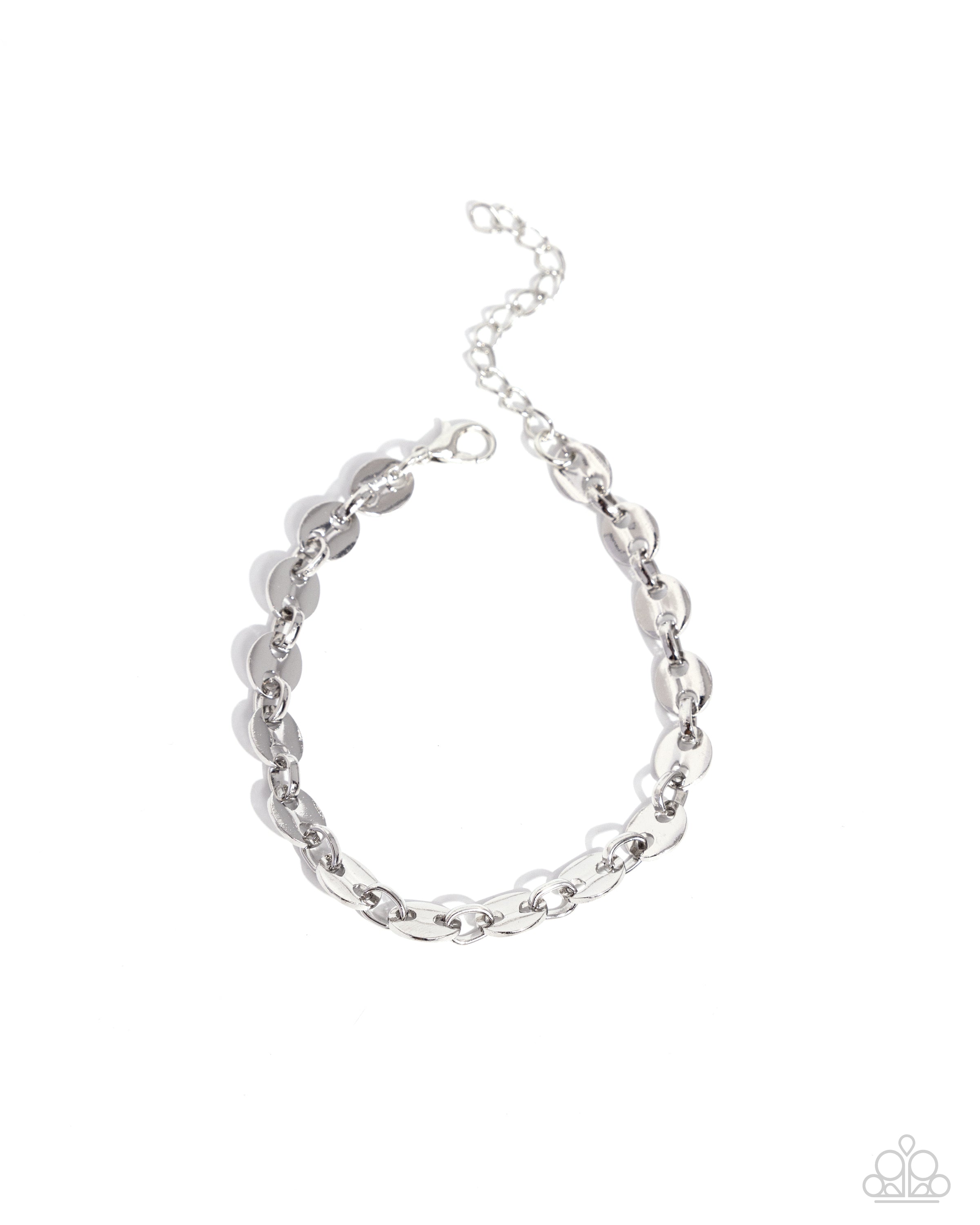 Resembling soda can tabs, an abstract silver chain interlocks around the wrist for an industrial look. Features an adjustable clasp closure.