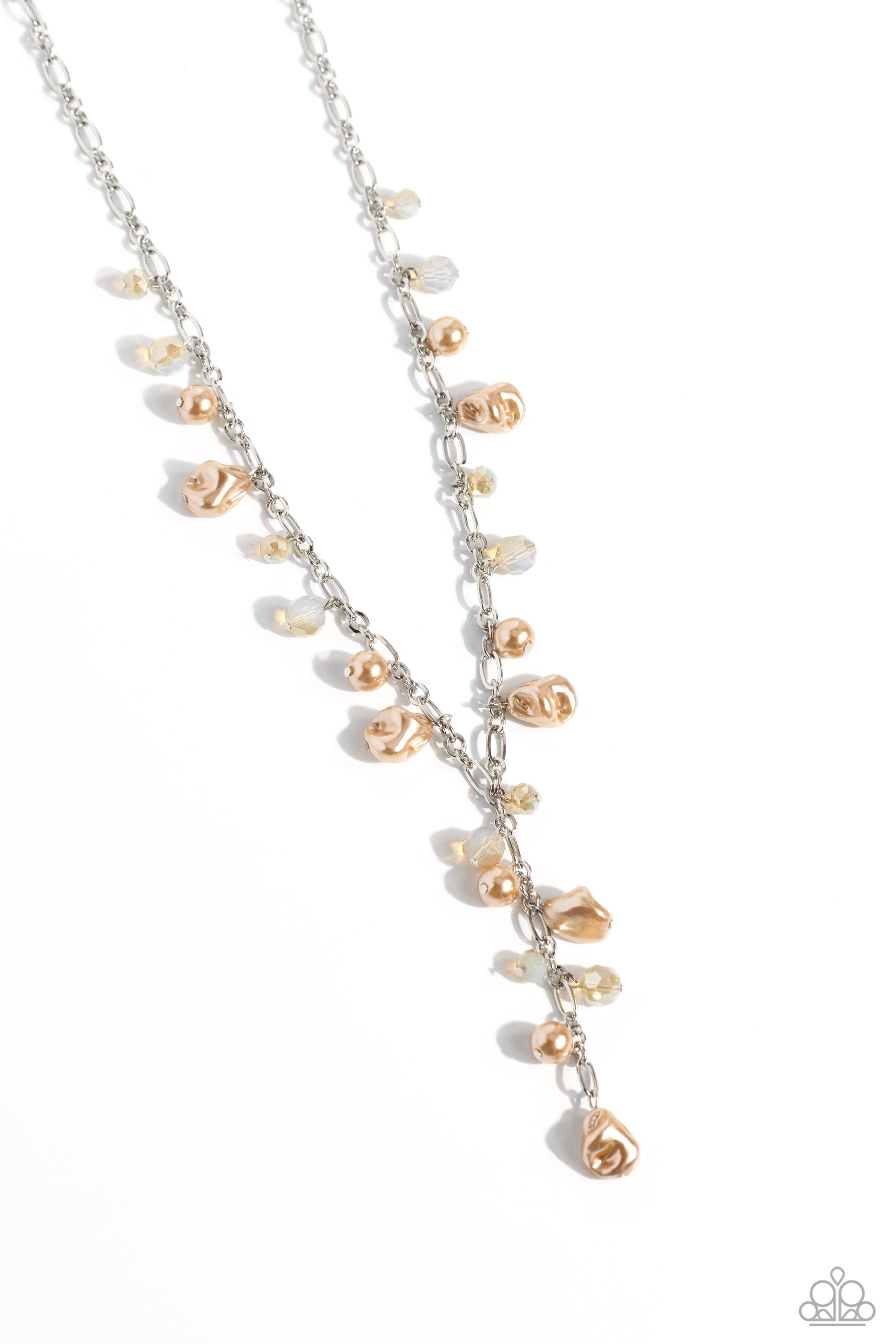 Featuring an array of sheens, a collection of faceted topaz-brushed clear beads, and varying sizes of classic and baroque Doe pearls trickle from an elongated, extended silver paperclip chain for a refined fashion. Features an adjustable clasp closure.