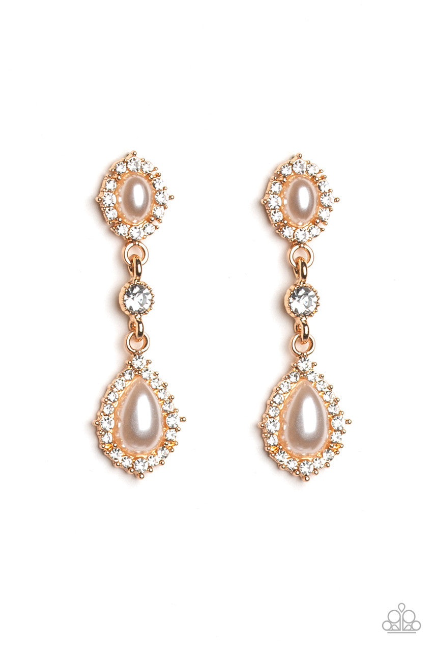 All-GLOWING - Gold - White Pearl Paparazzi Post Earrings