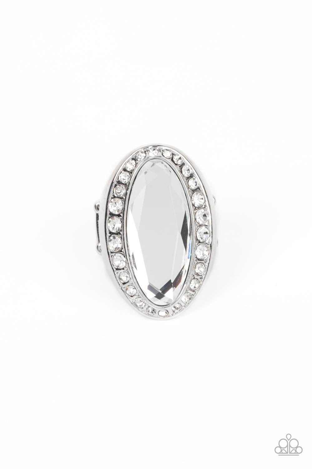 Believe in Bling - White - Oversized Oval Gem Paparazzi Ring