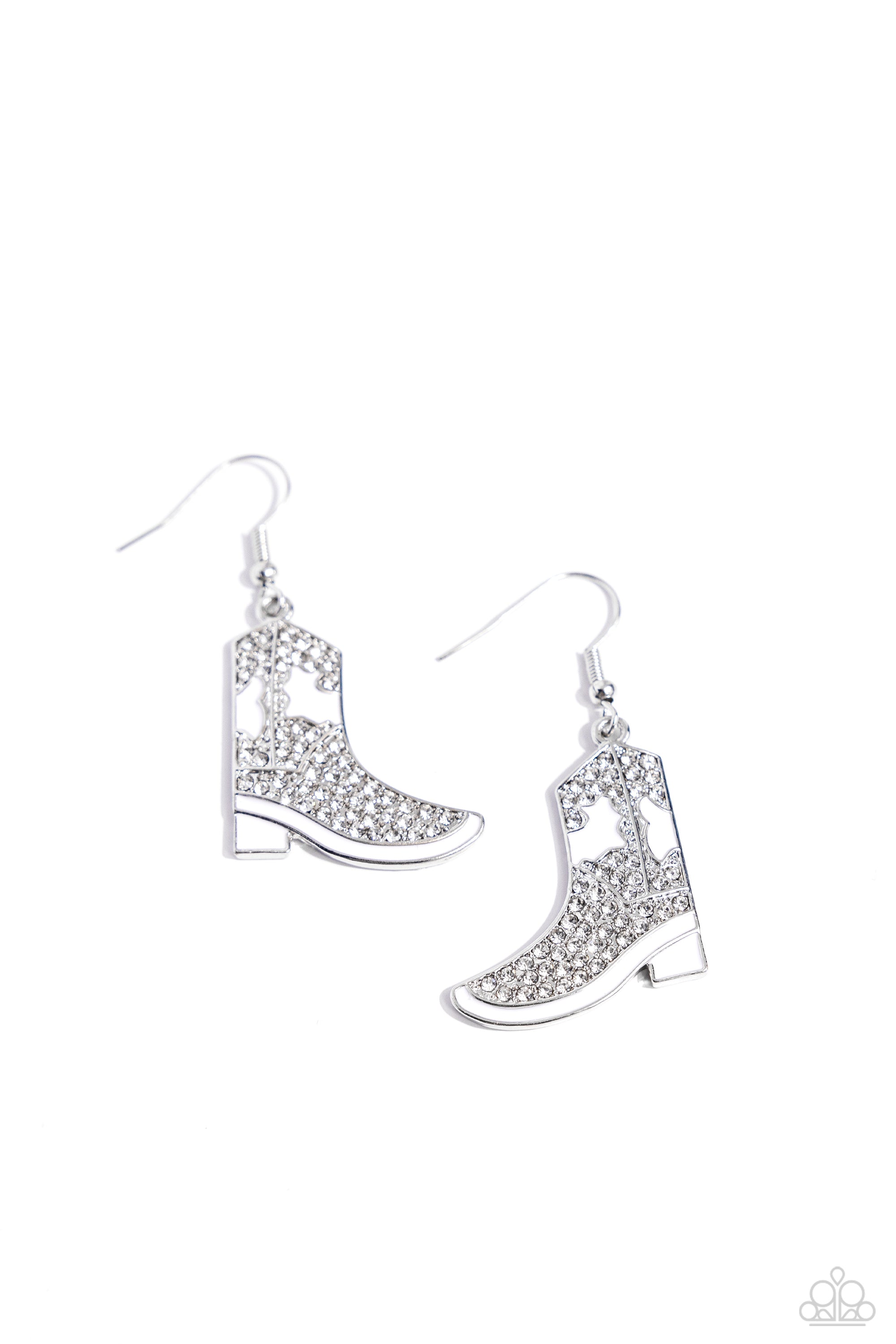 Boot Scootin Bling - White - Rhinestone Encrusted Cowboy Boot Paparazzi Fishhook Earrings