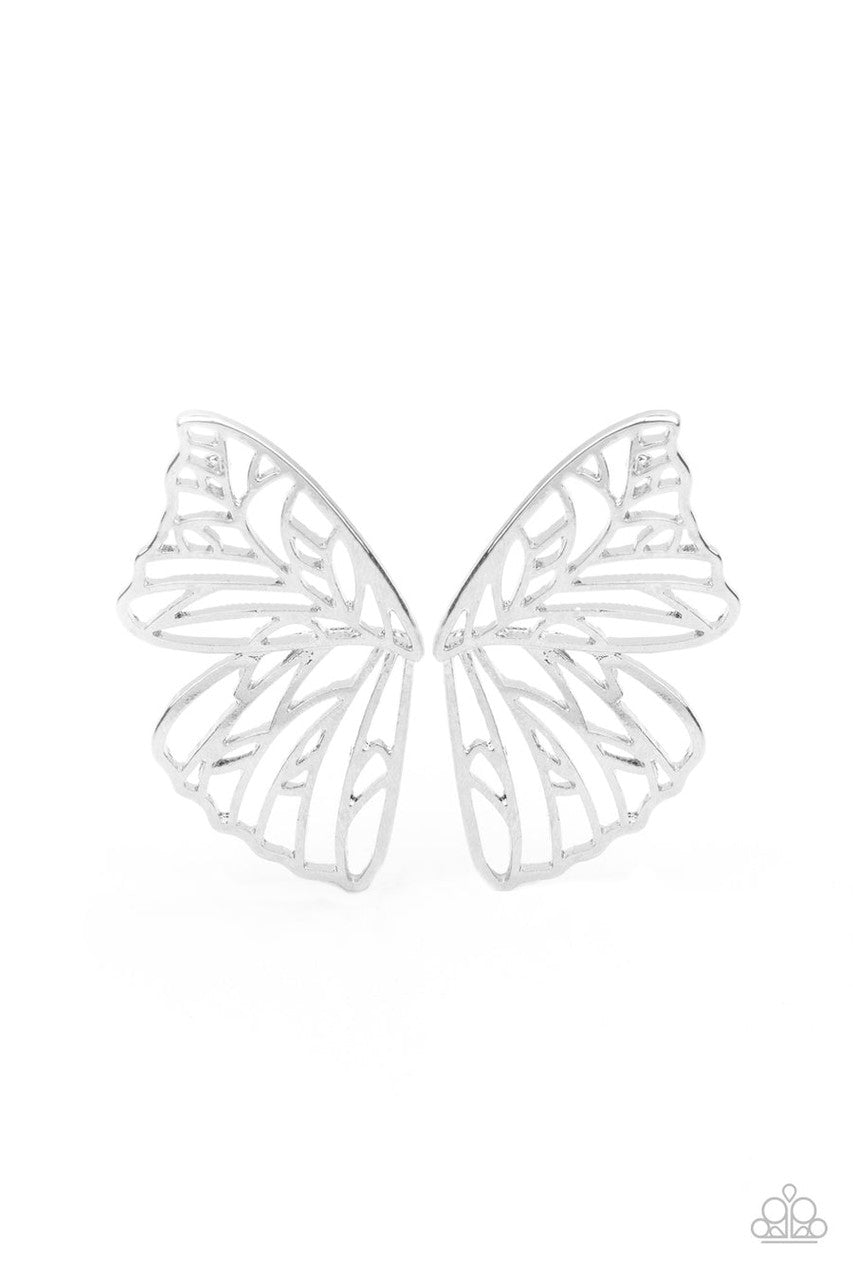 Butterfly Frills Silver Paparazzi Earrings