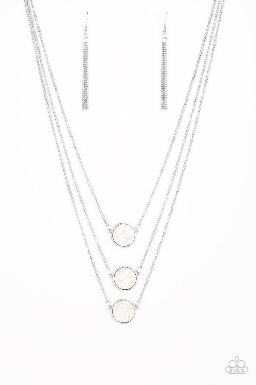 Three flat white stones are pressed into sleek silver frames and layered below the collar for a chic finish. Features an adjustable clasp closure.