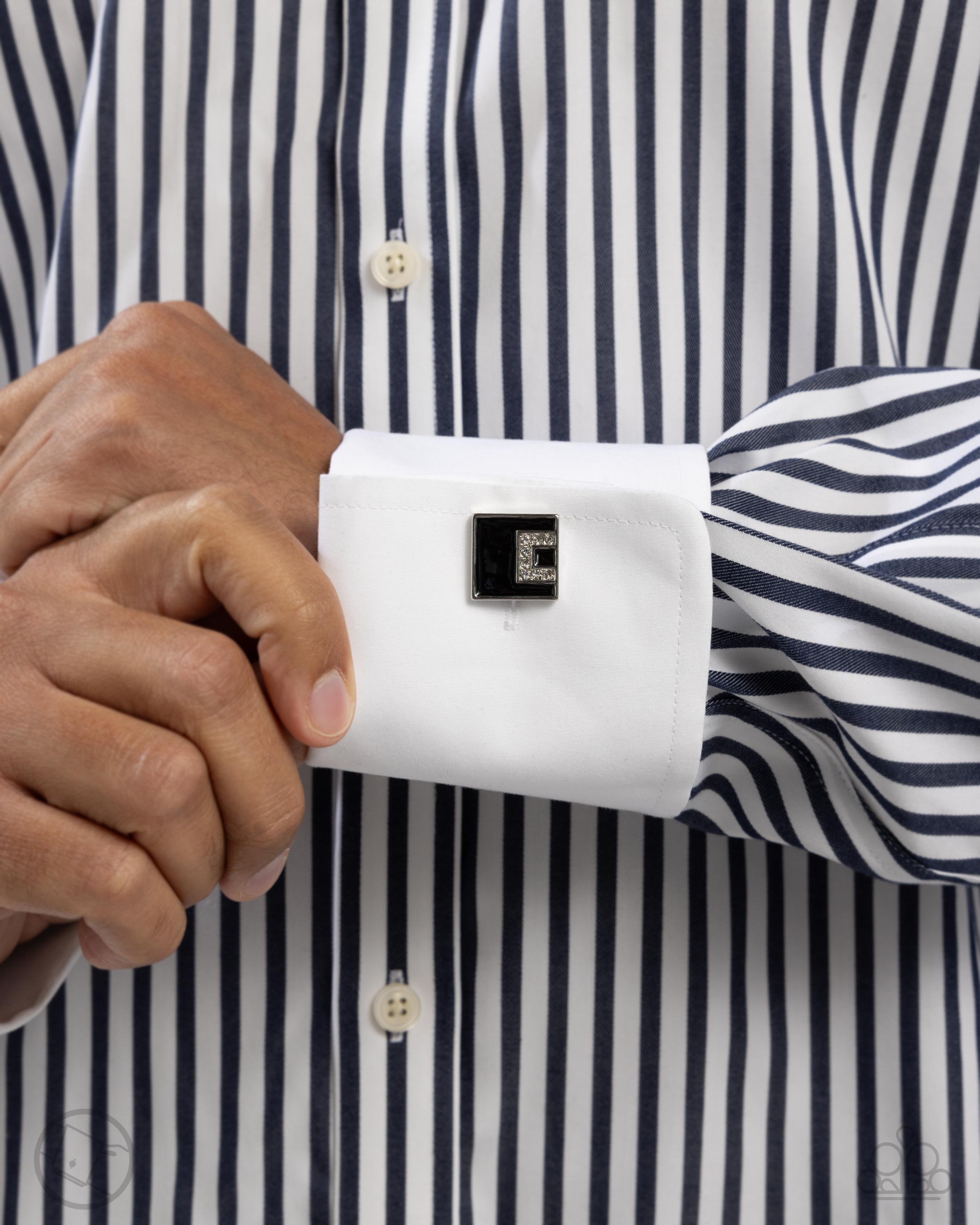 Classy Cuff Links - Black - Painted Square White Rhinestone Paparazzi Cuff Links