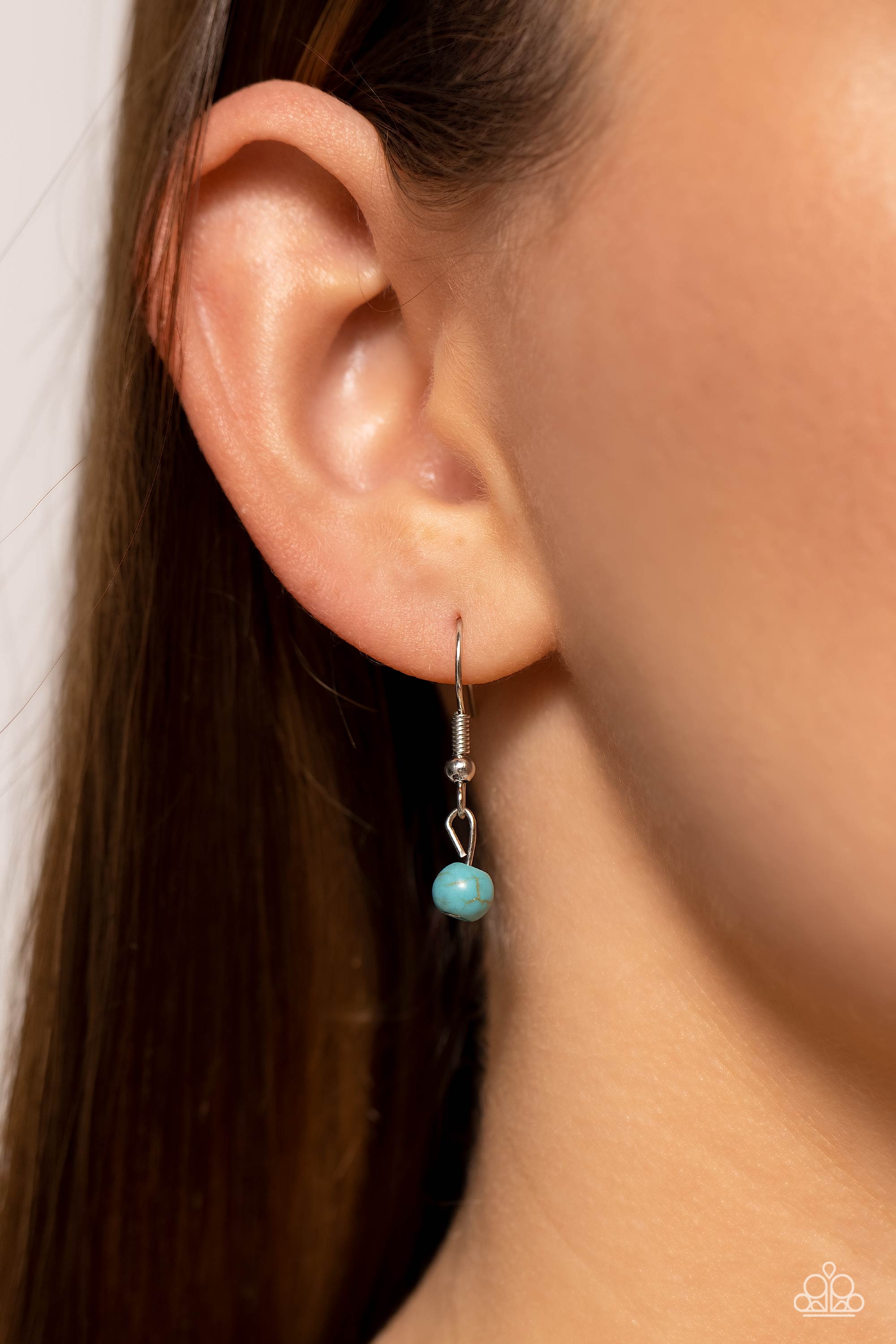 Hammered in a dotted motif, a dainty row of silver rods shimmers along an invisible wire dotted in dainty silver and turquoise stone beads. Attached to a dainty silver chain, the tapered fringe flares out below the collar, resulting in an earthy edge. Features an adjustable clasp closure.