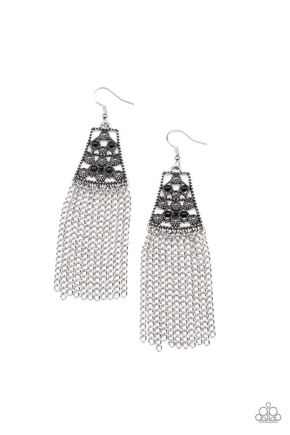 Cleopatra's Allure - Black - Beaded Sunburst Silver Fringe Paparazzi Fishhook Earrings