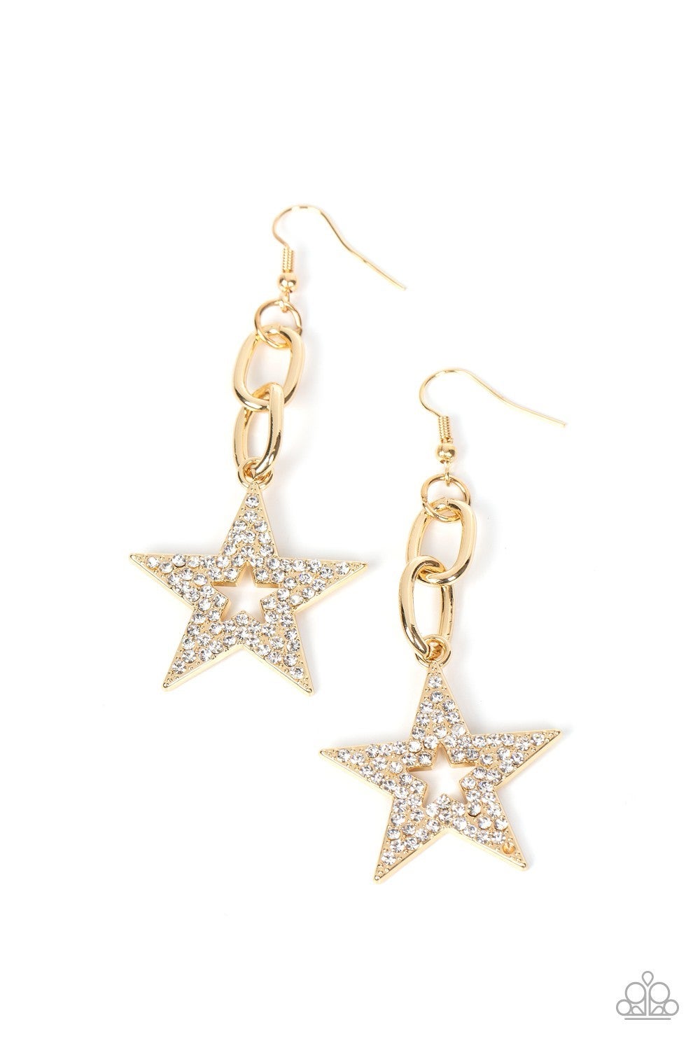 Cosmic Celebrity - Gold - White Rhinestone Encrusted Gold Star Paparazzi Fishhook Earrings