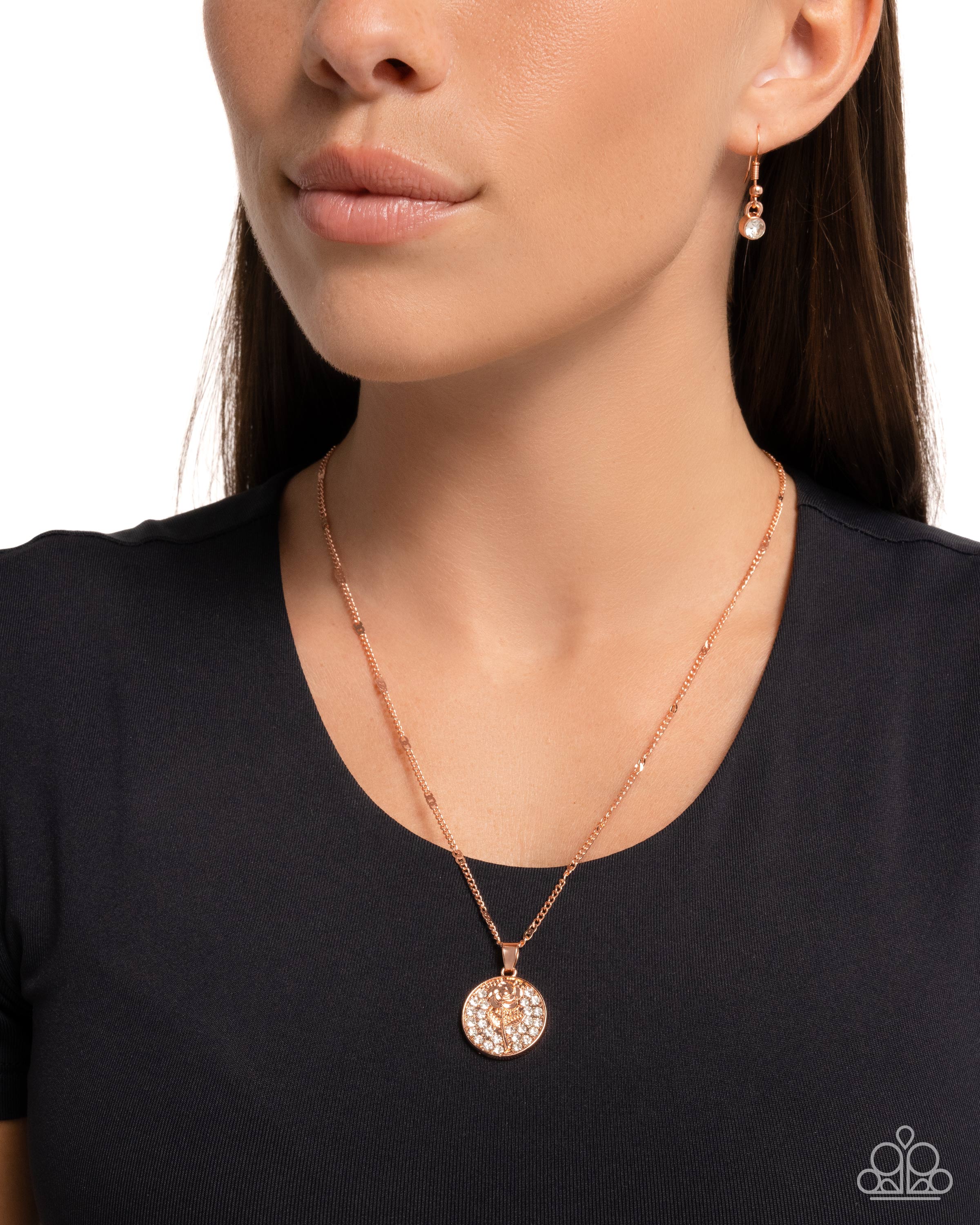 Embellished in glistening white rhinestones, a shiny copper rose is featured front and center in a shiny copper pendant that glides along a shiny copper chain for a fairytale-inspired fashion. Features an adjustable clasp closure.