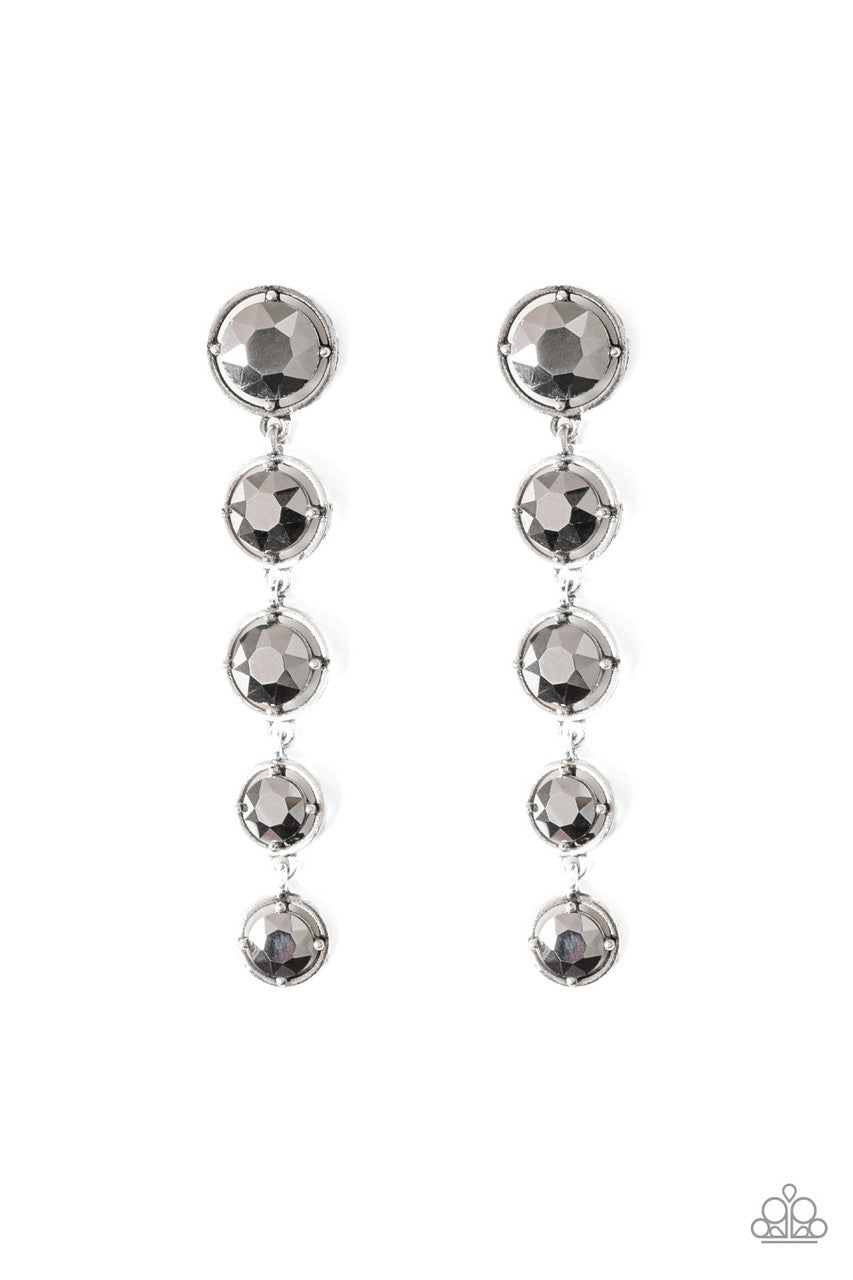 Featuring sleek silver fittings, faceted hematite gems gradually decrease as they trickle from the ear for a glamorous look. Earring attaches to a standard post fitting.