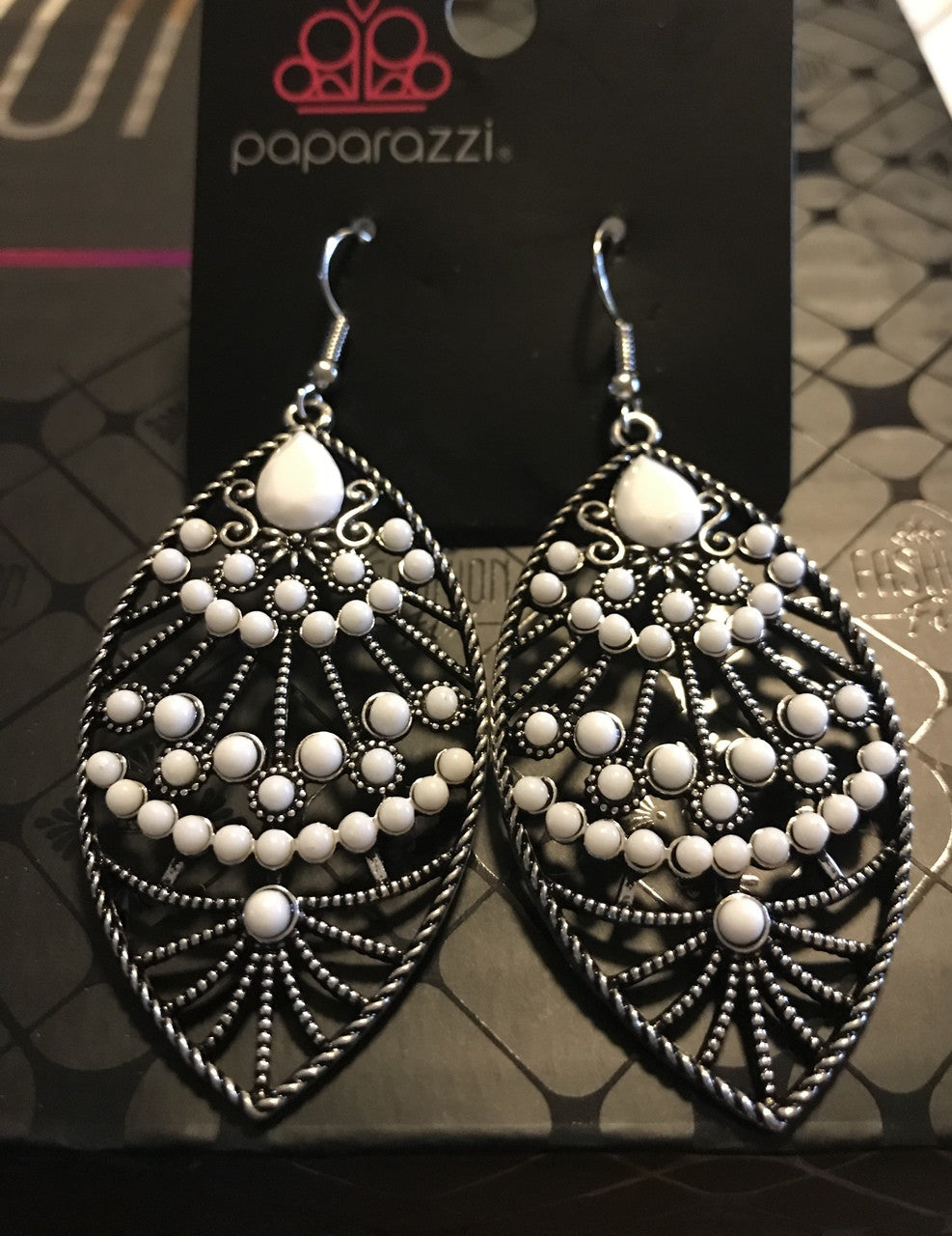 Eastern Extravagance White August 2018 Fashion Fix Exclusive Paparazzi Earrings