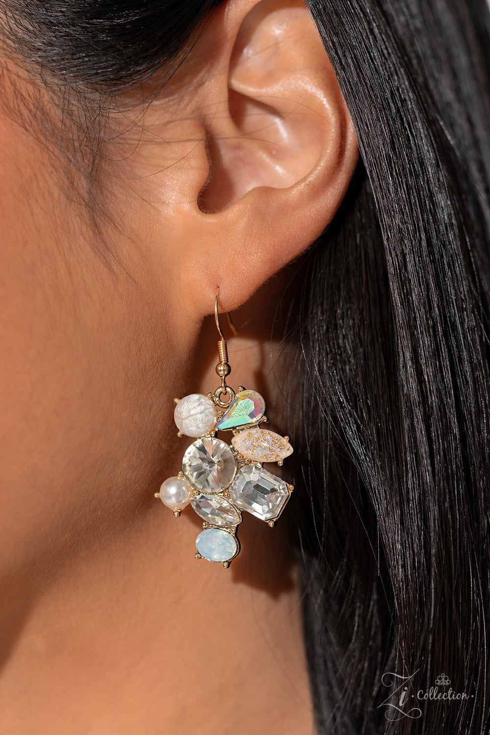 Enchanting - 2023 Zi Collection - Gold with White and Iridescent Gem and Cat's Eye Stone Paparazzi Short Statement Necklace