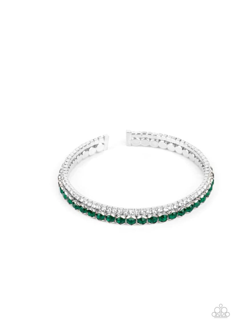 Fairytale Sparkle Green Rhinestone Paparazzi Flex Cuff Bracelet