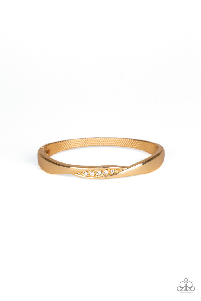 Glittering Grit - Gold - White Rhinestone Paparazzi Hinge Bracelet