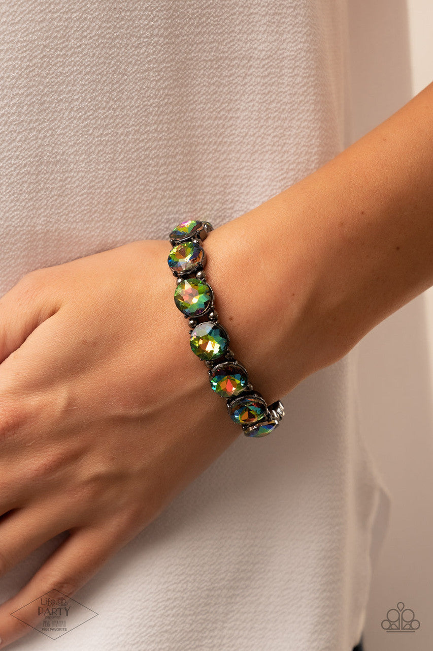 Glitzy Glamorous - Multi - Oil Spill Gem Gunmetal Paparazzi Stretchy Bracelet - Pink Diamond Exclusive