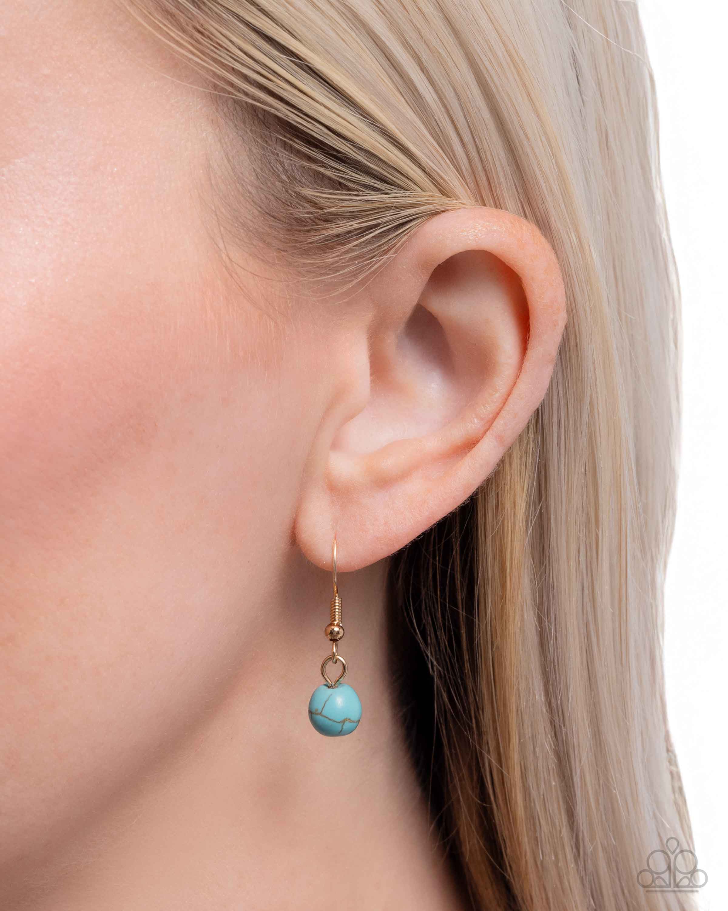 Encased in pronged gold fittings, a collection of teardrop and marquise-shaped turquoise and brown-marbled turquoise stones delicately coalesce and cluster into an extended pendant below the collar from an abstract gold chain for a rustically radiant display. Features an adjustable clasp closure. As the stone elements in this piece are natural, some color variation is normal.