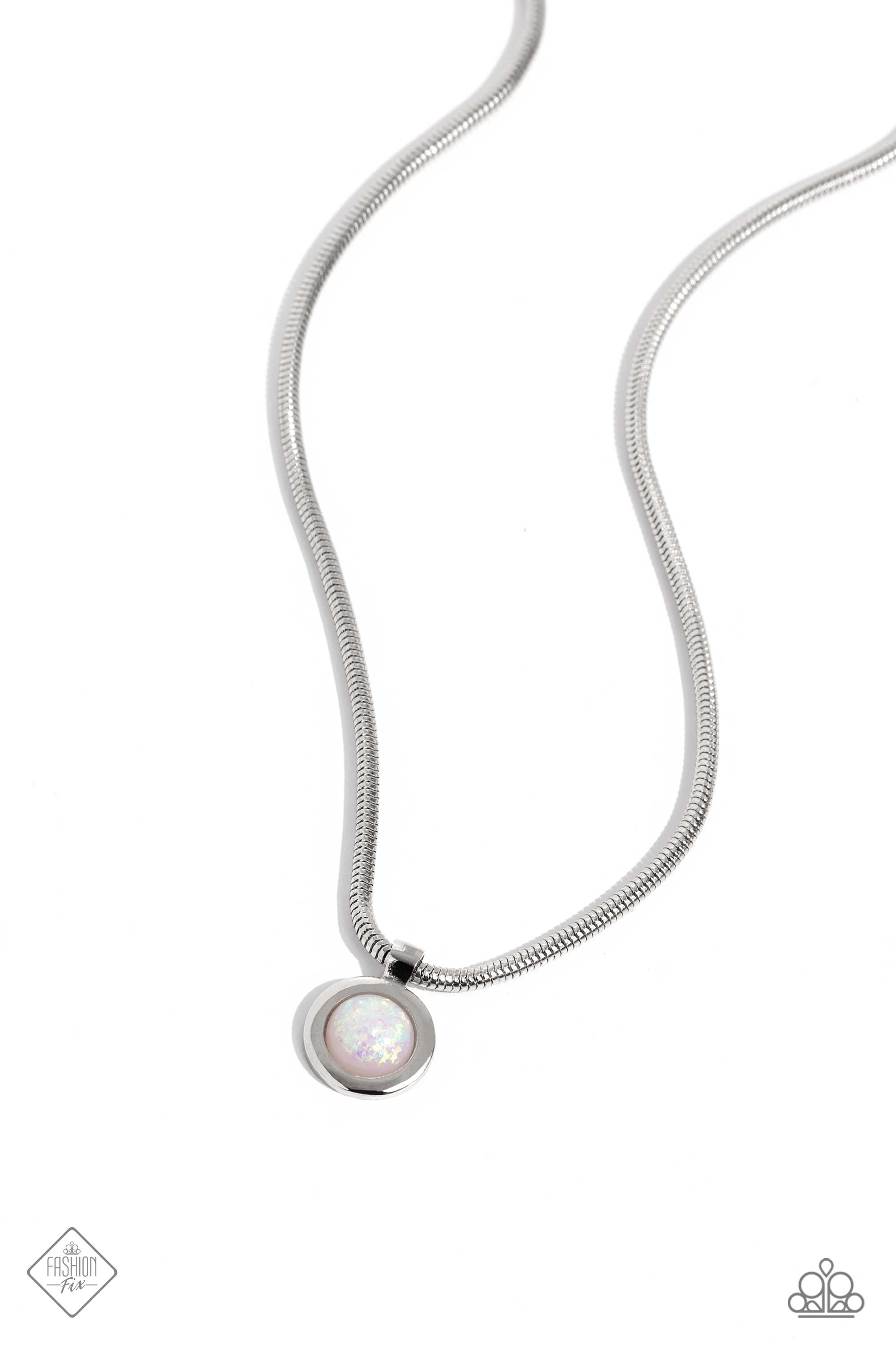 High-Strung Habit - White - Iridescent Bead Paparazzi Short Necklace - September 2023 Sunset Sightings