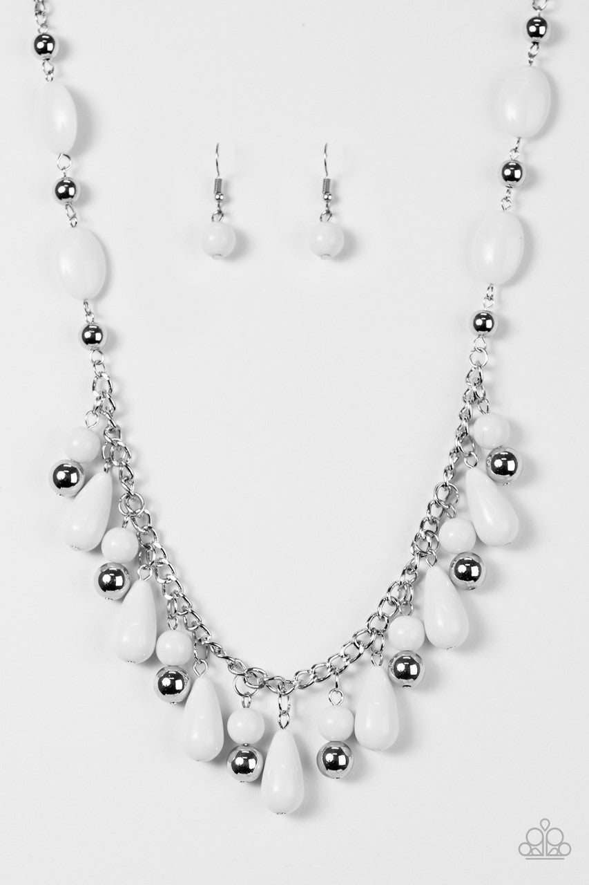 An array of white beads trickle down a shimmery silver chain for a whimsical look. Shiny silver beads are sprinkled between the colorful accents, adding a classic shimmer to the seasonal palette. Features an adjustable clasp closure.