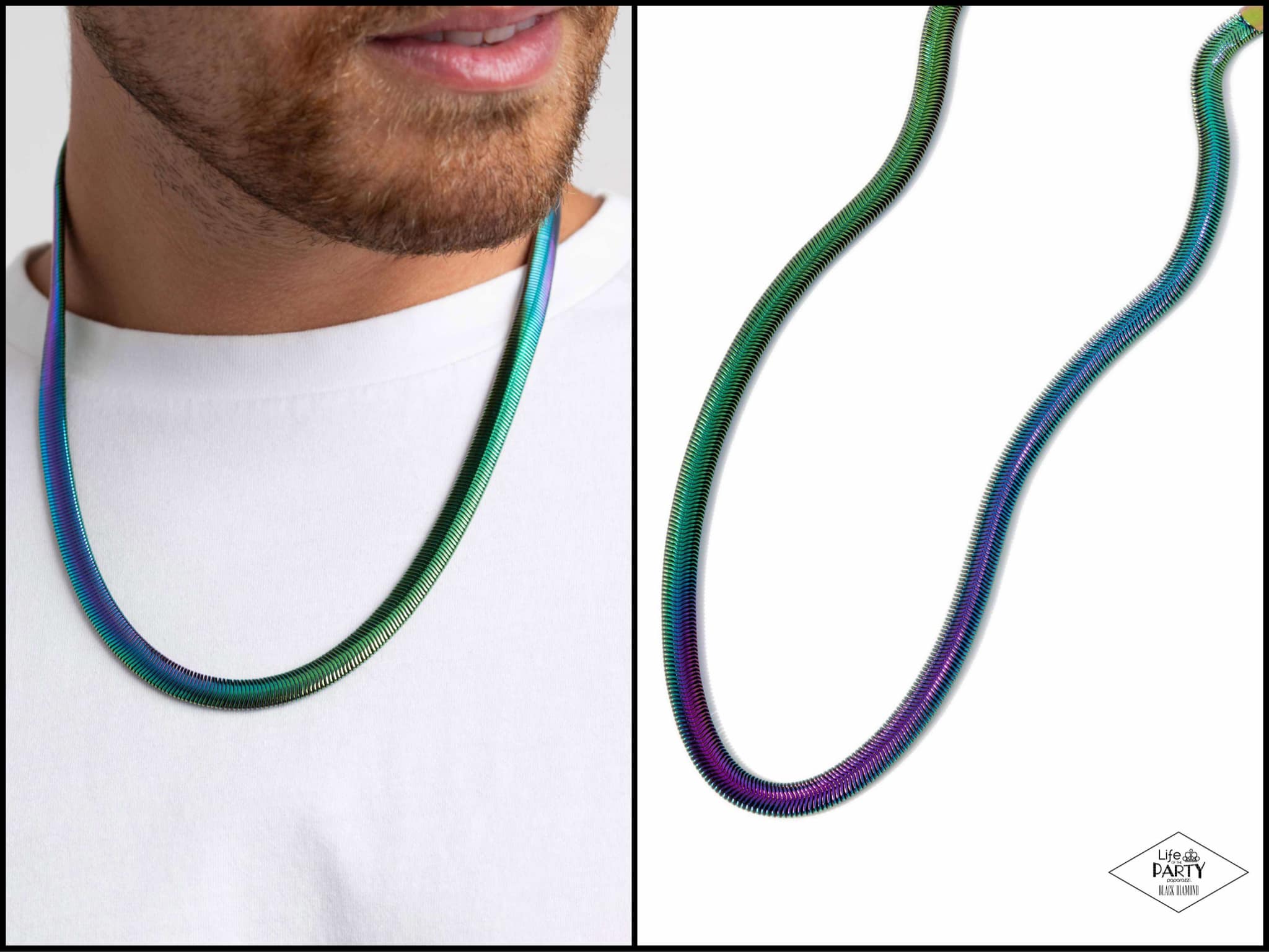 Industrial Index - Multi - Oil Spill Herringbone Chain Paparazzi Men's Necklace - Black Diamond Exclusive