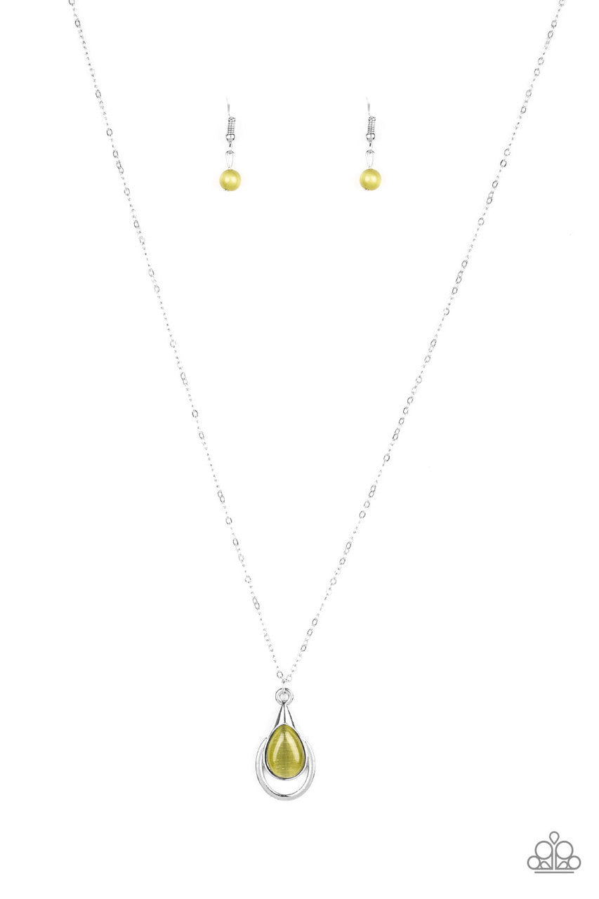 Chiseled into a tranquil teardrop, a glowing green moonstone is pressed into an abstract silver frame, creating a whimsical pendant. Features an adjustable clasp closure.