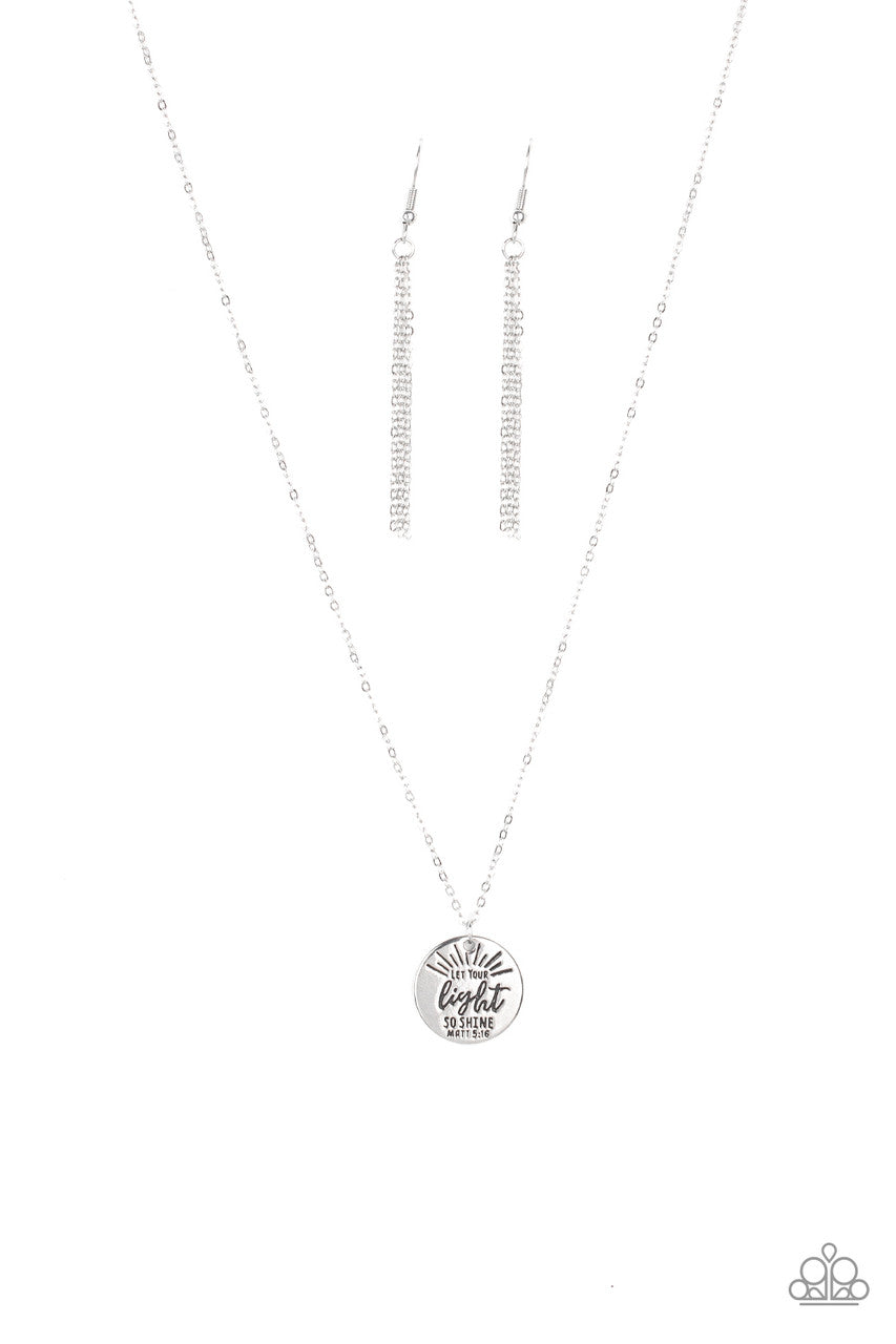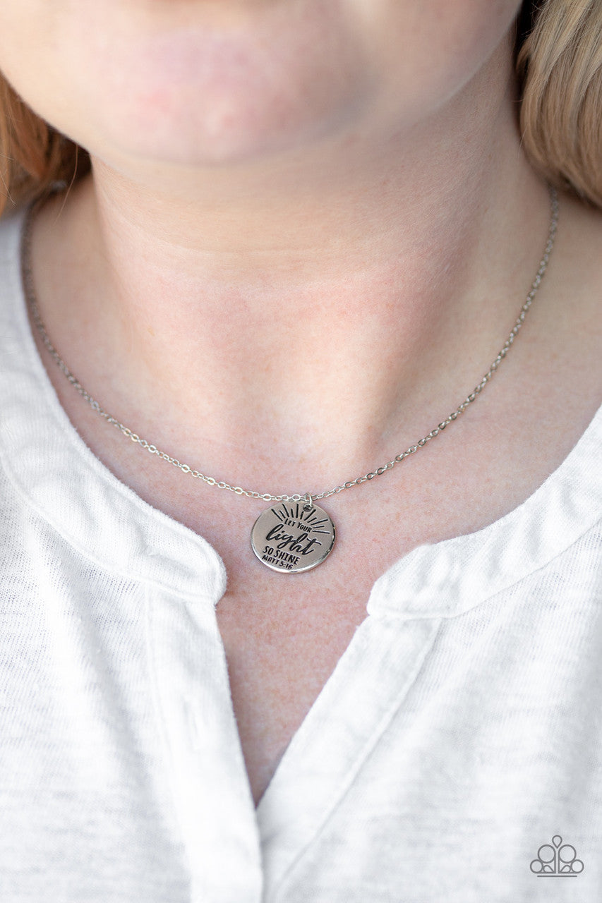 A silver disc is stamped in the phrase, "Let Your Light So Shine, Matt 5:16", for an inspirational finish. Features an adjustable clasp closure.