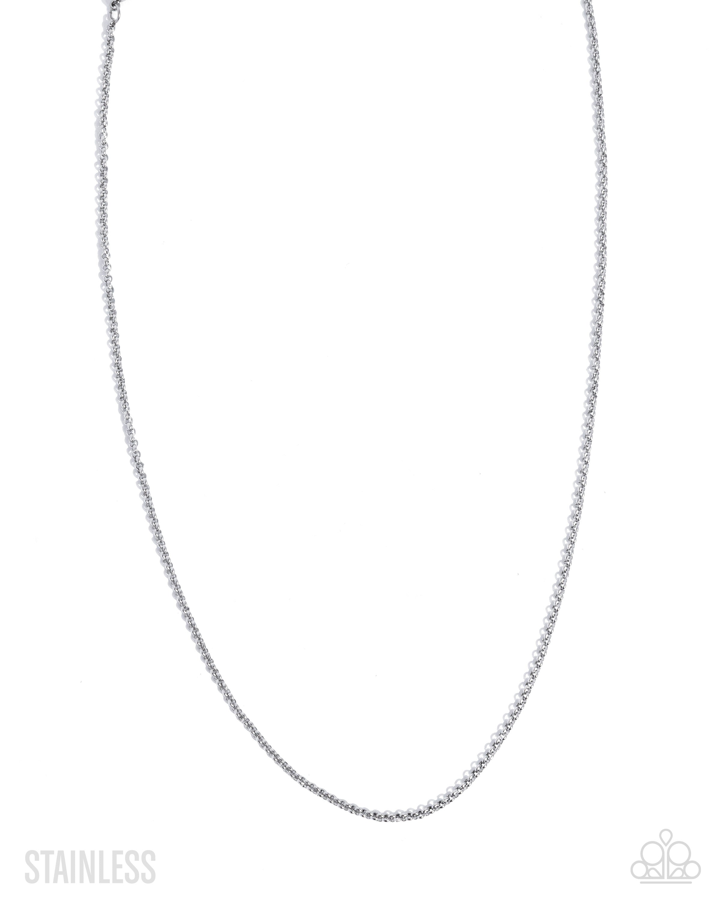 Featuring stainless steel, a glistening classic chain cascades below the chest for a simple, sturdy look. Features an adjustable clasp closure.