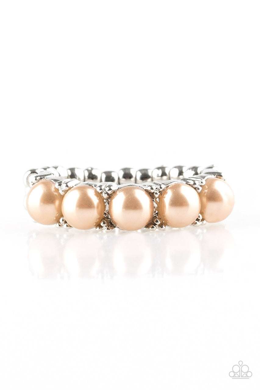 Bubbly brown pearls are encrusted along a dainty silver band for a whimsical look. Features a dainty stretchy band for a flexible fit.