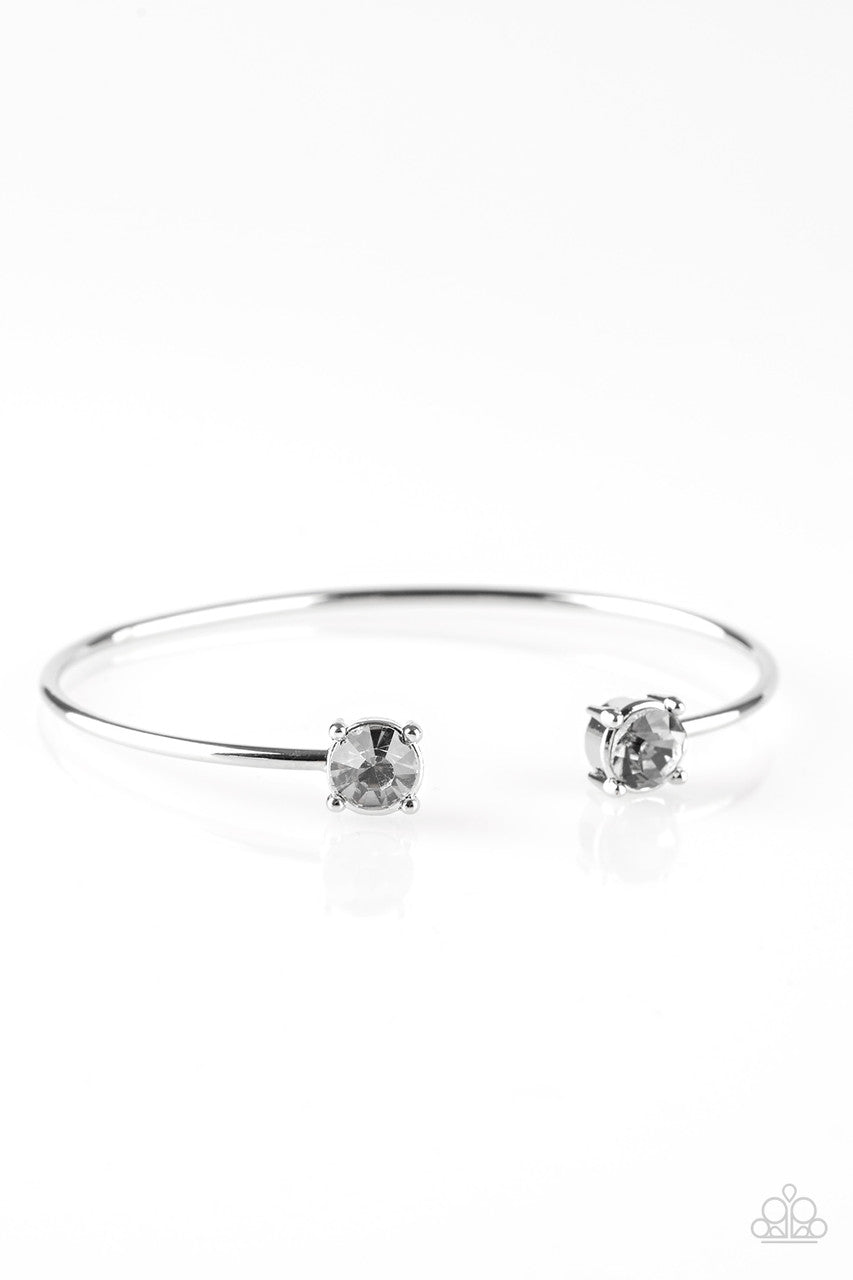 Attached to a curling silver bar, smoky rhinestones are pressed into silver fittings, creating a dainty cuff.