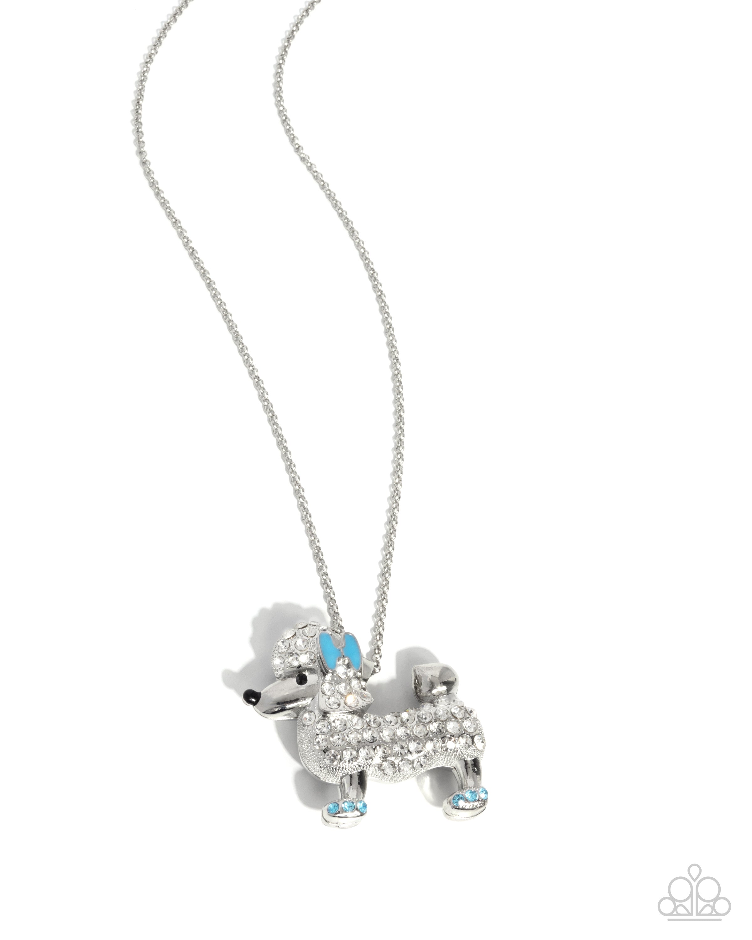 An adorable poodle-shaped pendant glides along a dainty silver chain for a playful display below the neck. A light blue-painted bow perches on the poodle's ear while light blue rhinestones dot its feet. The body and head are encrusted with dazzling white rhinestones. Features an adjustable clasp closure.