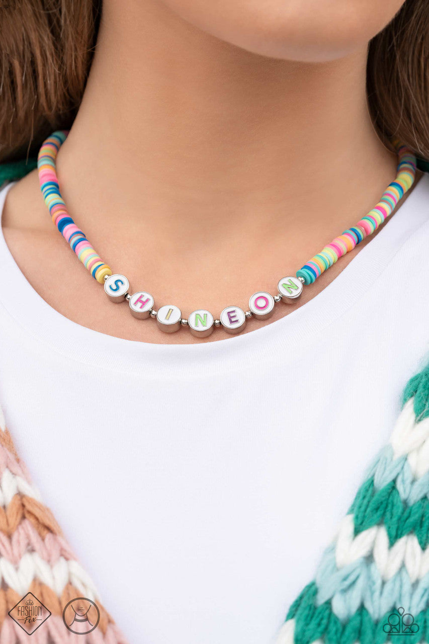 Psychedelic Glow - Multi - Clay Disc Bead "Shine On" Inspirational Paparazzi Choker Necklace - April 2023 Sunset Sightings