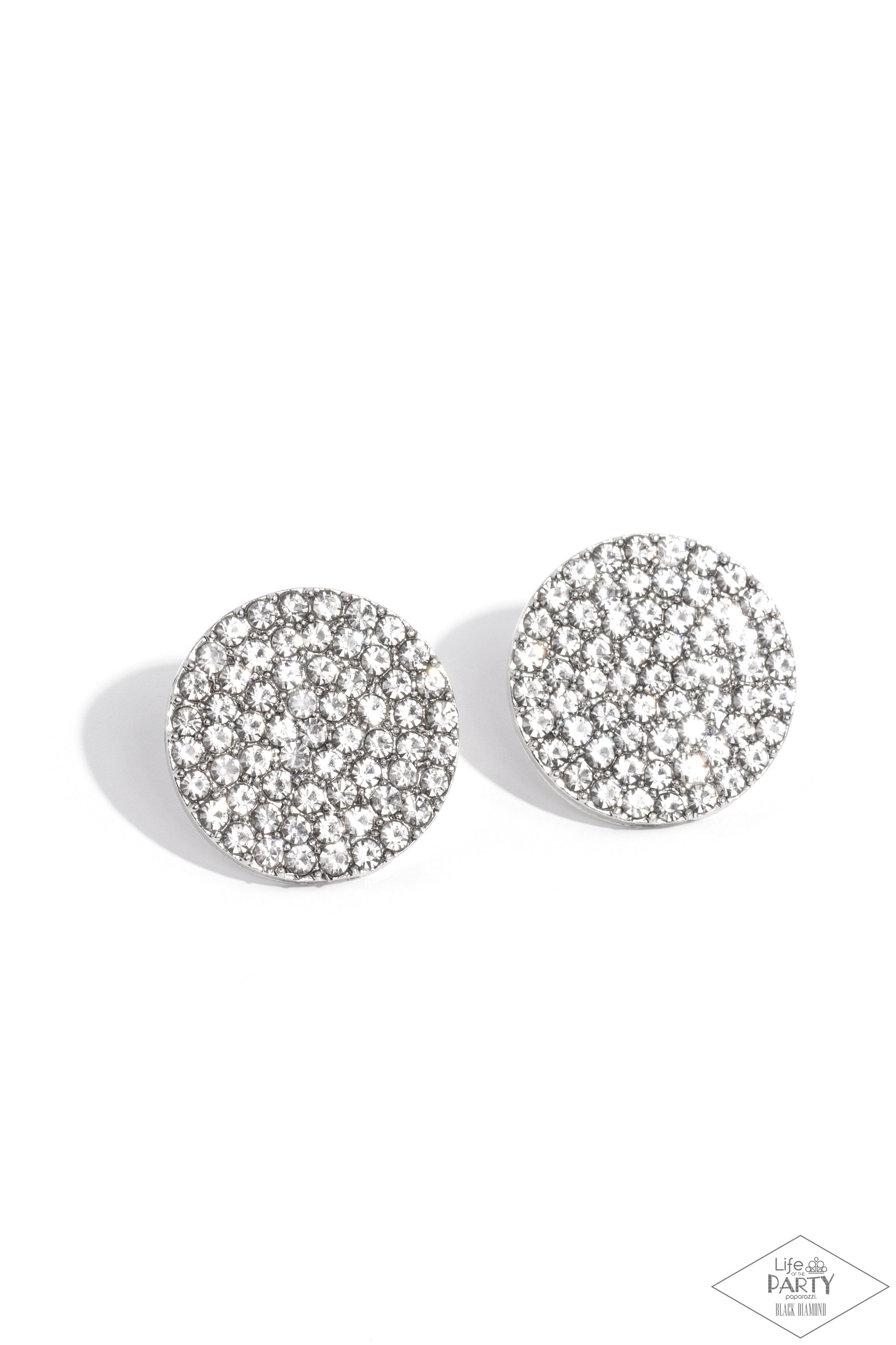 Radiant Ripples - White - Rhinestone Encrusted Round Frame Paparazzi Post Earrings - Black Diamond Exclusive