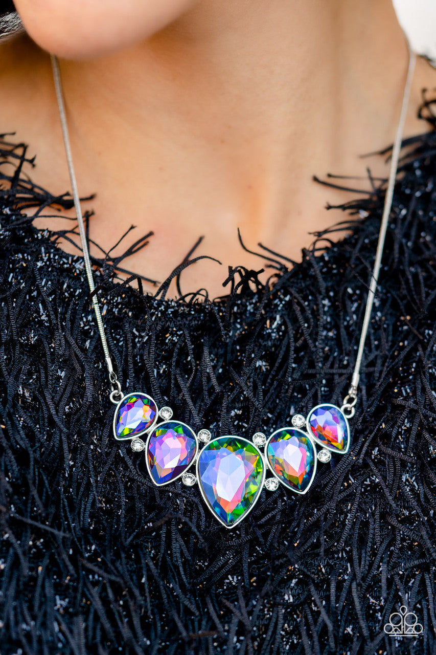 Regally Refined - Multi - Oil Spill Teardrop Rhinestone Paparazzi Short Necklace - November 2022 Life of the Party Exclusive