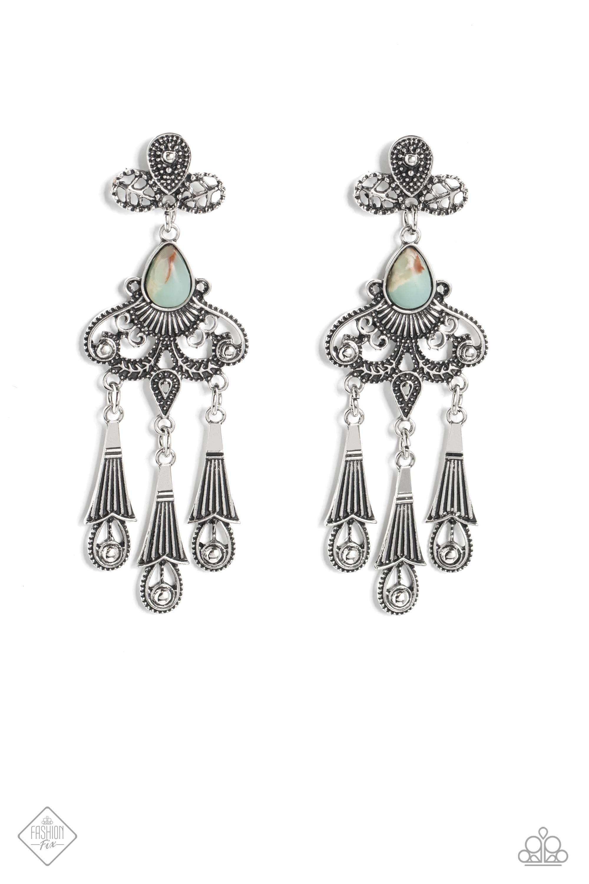 Revered Rustic - Blue - Marbled Stone Paparazzi Post Earrings - July 2023 Simply Santa Fe