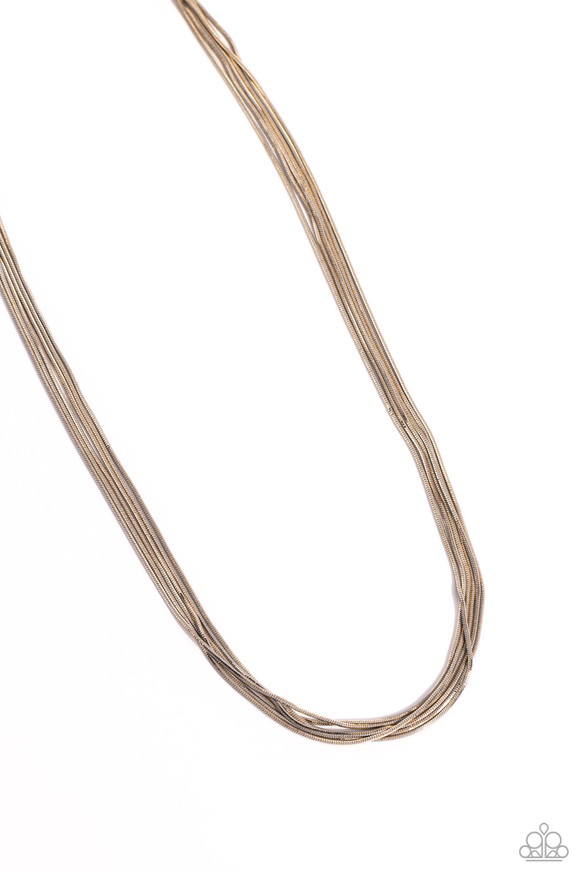 Featuring shiny gold and silver links, six strands of slim snake chains drape across the chest for an edgy mixed metallic finish. Features an adjustable clasp closure.