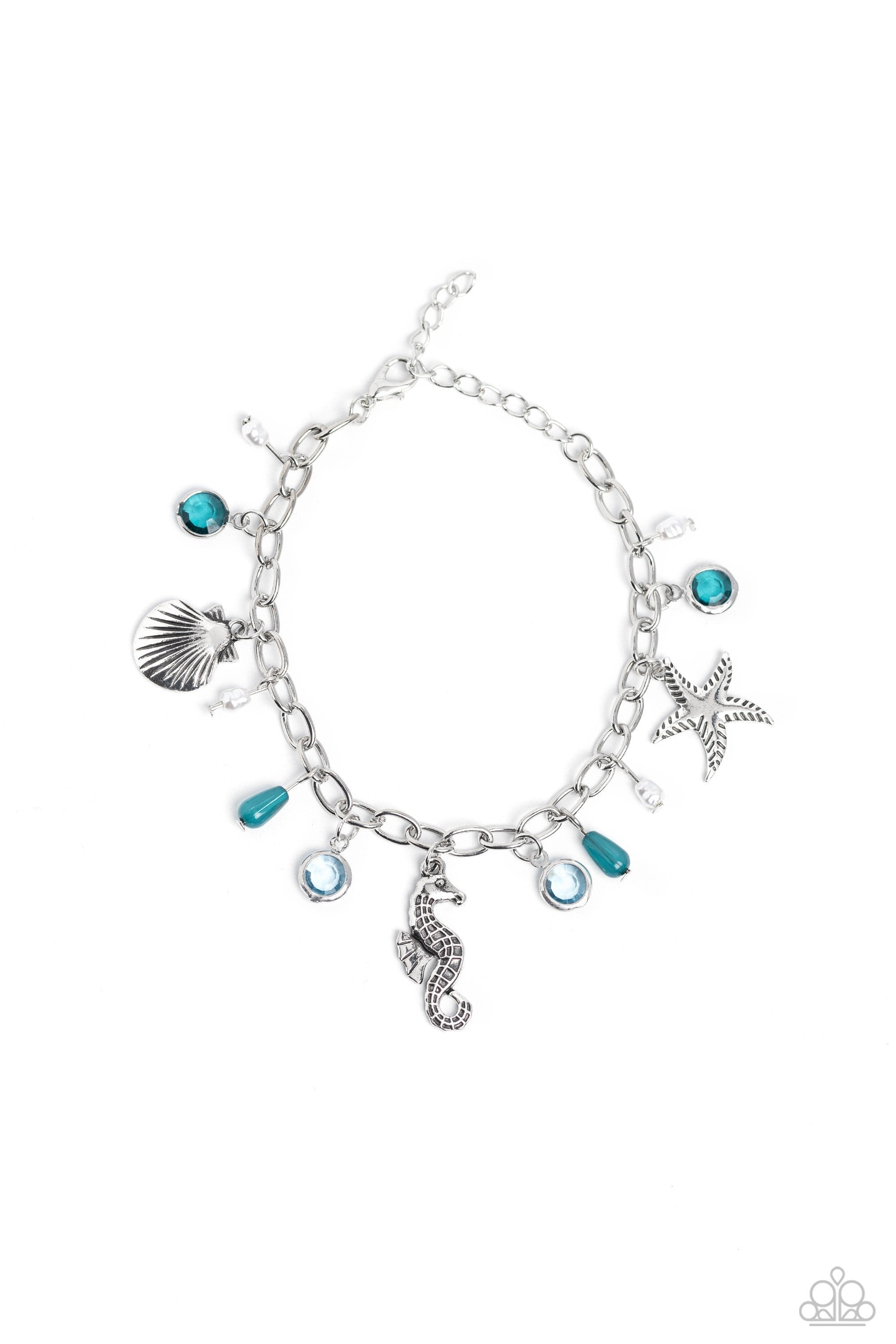 Seahorse Serenade - Blue - Baroque Pearl and Bead Seashell Charm Paparazzi Lobster Claw Bracelet