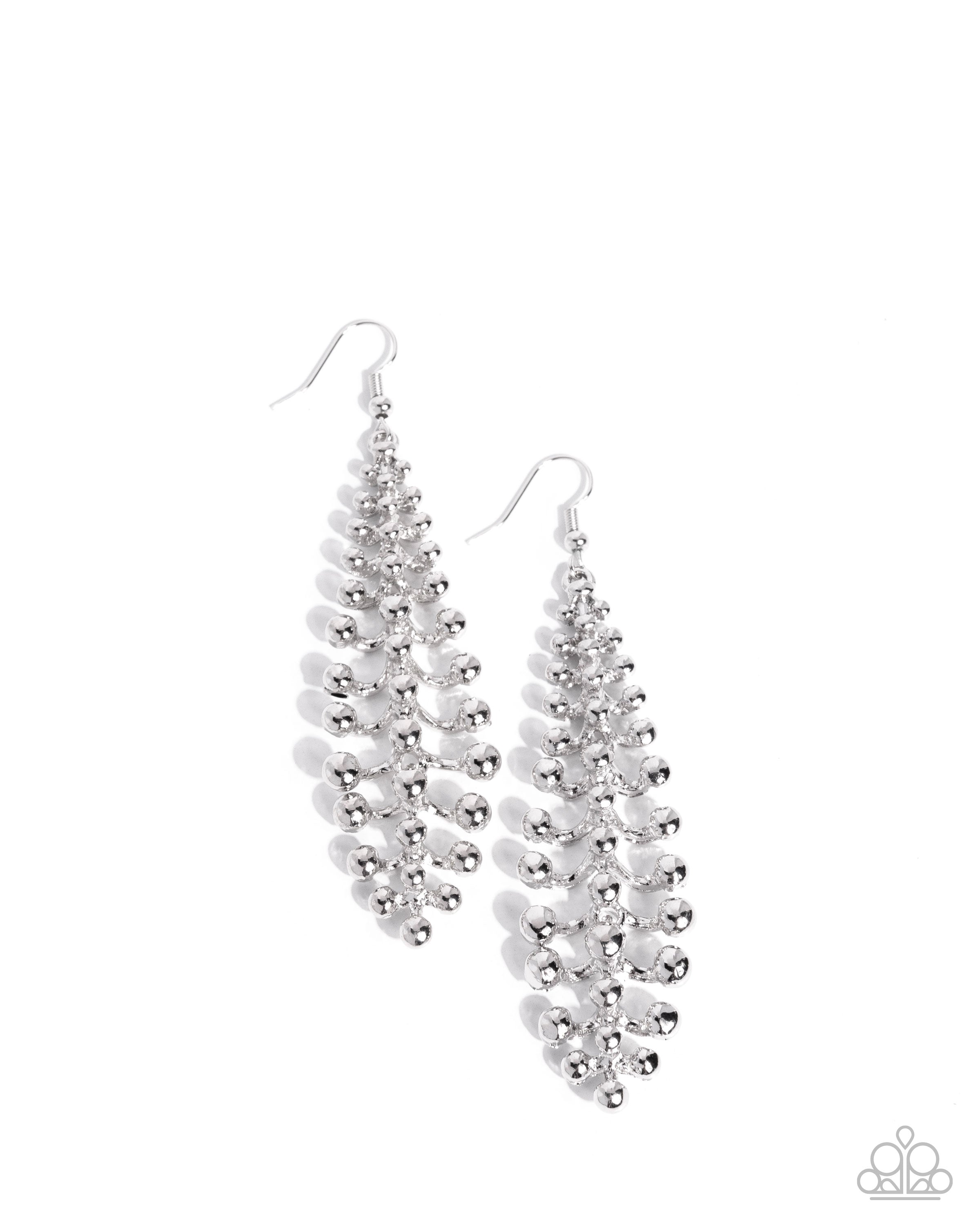 Copious silver studs bloom and flair out in a leafy-inspired pattern, coalescing into a teardrop frame for a timeless look below the ear. Earring attaches to a standard fishhook fitting.