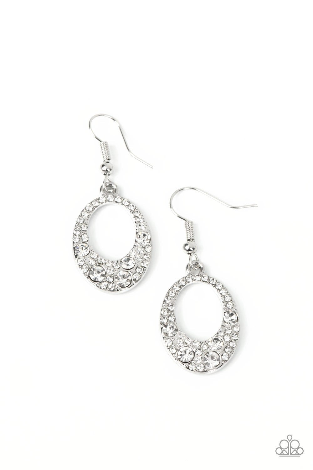 Showroom Sizzle - White - Rhinestone Oval Frame Paparazzi Fishhook Earrings