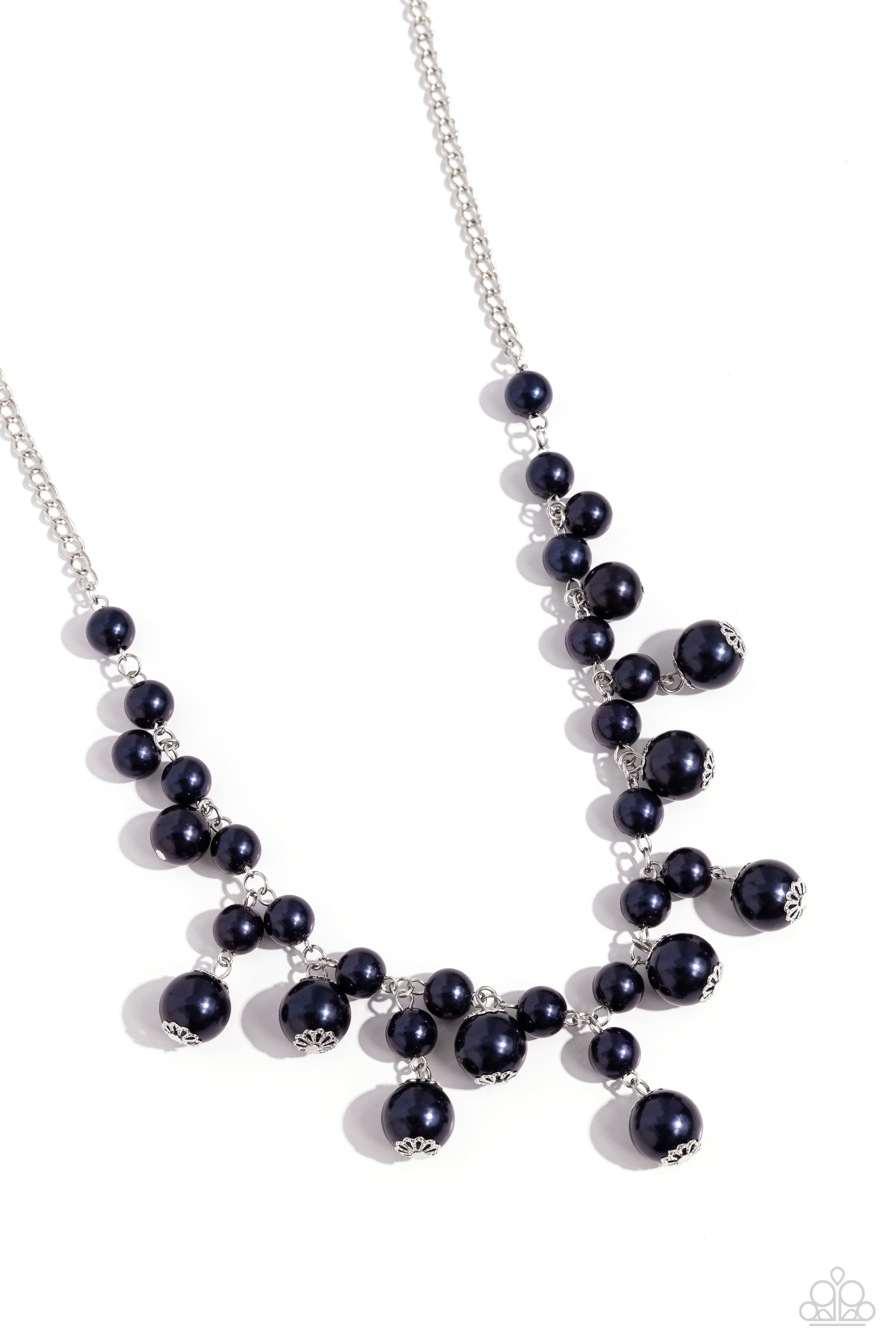 Varying in size, bubbly blue pearls swing from the bottom of a classic strand of pearls, creating a refined fringe below the collar. Features an adjustable clasp closure.