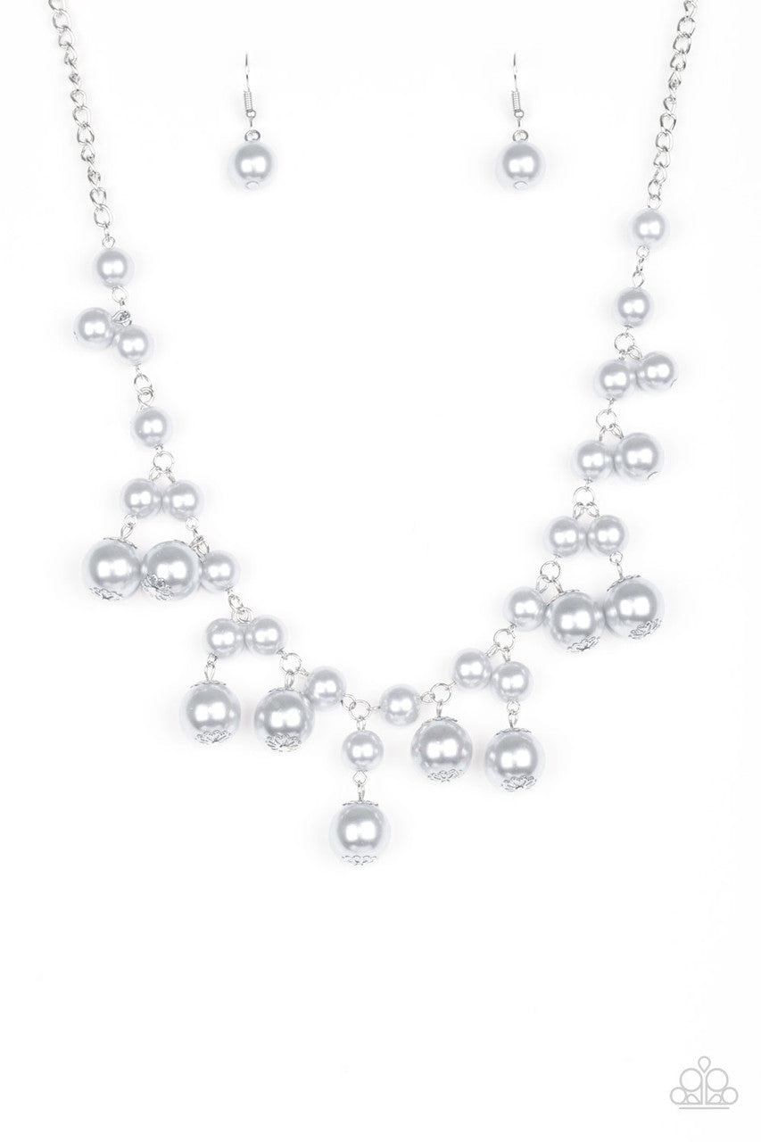 Varying in size, bubbly silver pearls swing from the bottom of a classic strand of pearls, creating a refined fringe below the collar. Features an adjustable clasp closure.