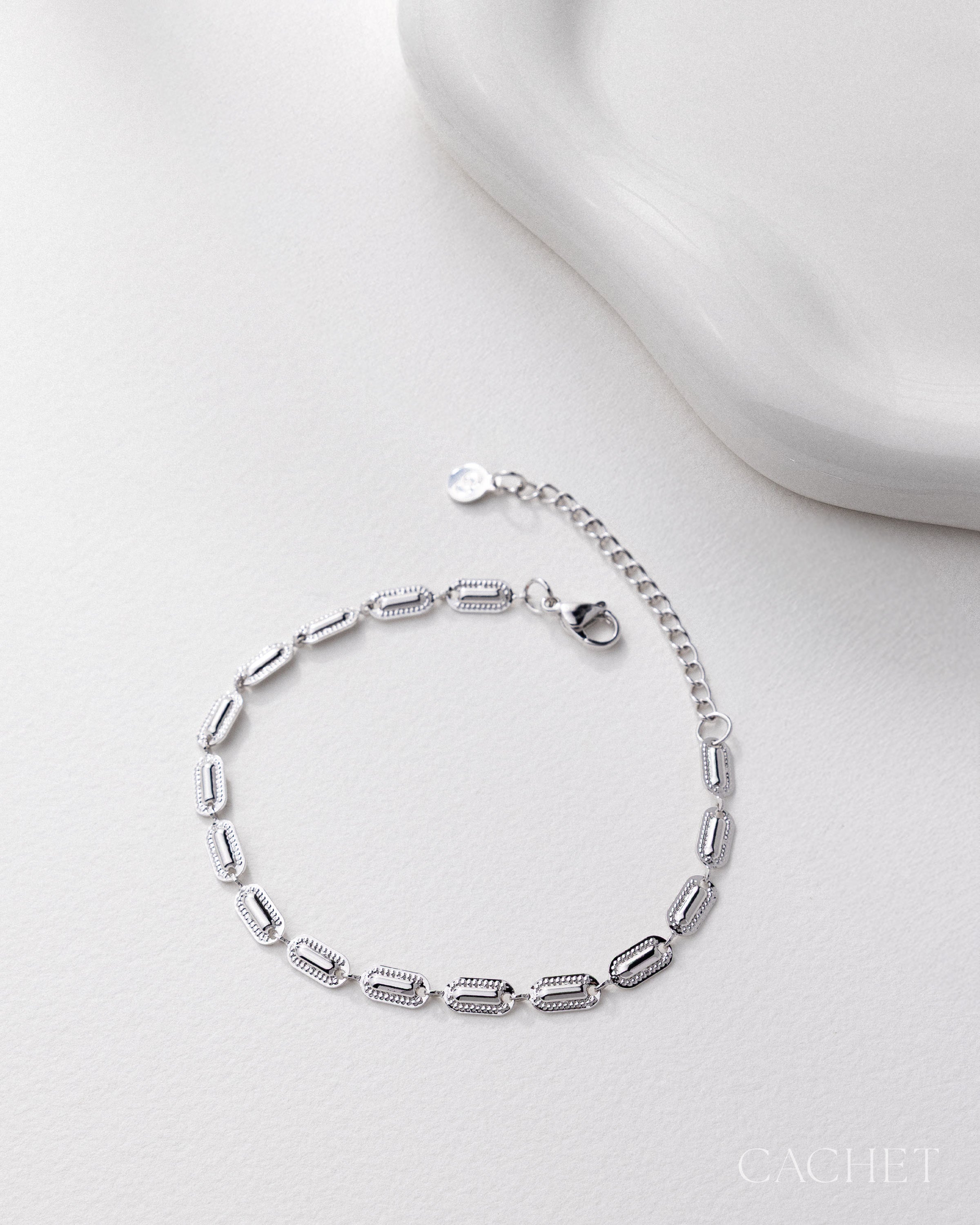 Like serenity personified, the bracelet "Sora" drapes the wrist in texture that catches and softens the light, creating a tranquil flow of elegance with every movement.